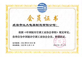 威海市遠大電器制造有限公司為國家高新技術企業,省“專精特新”企業、重合同守信用企業、中國制冷空調工業協會會員單位、企業信用AAA等級。公司已通過ISO9001:2016質量管理體系、ISO14001:2016環境管理體系、ISO45001:2020職業健康安全管理體系認證,具有中低壓壓力容器制造、安裝資質。